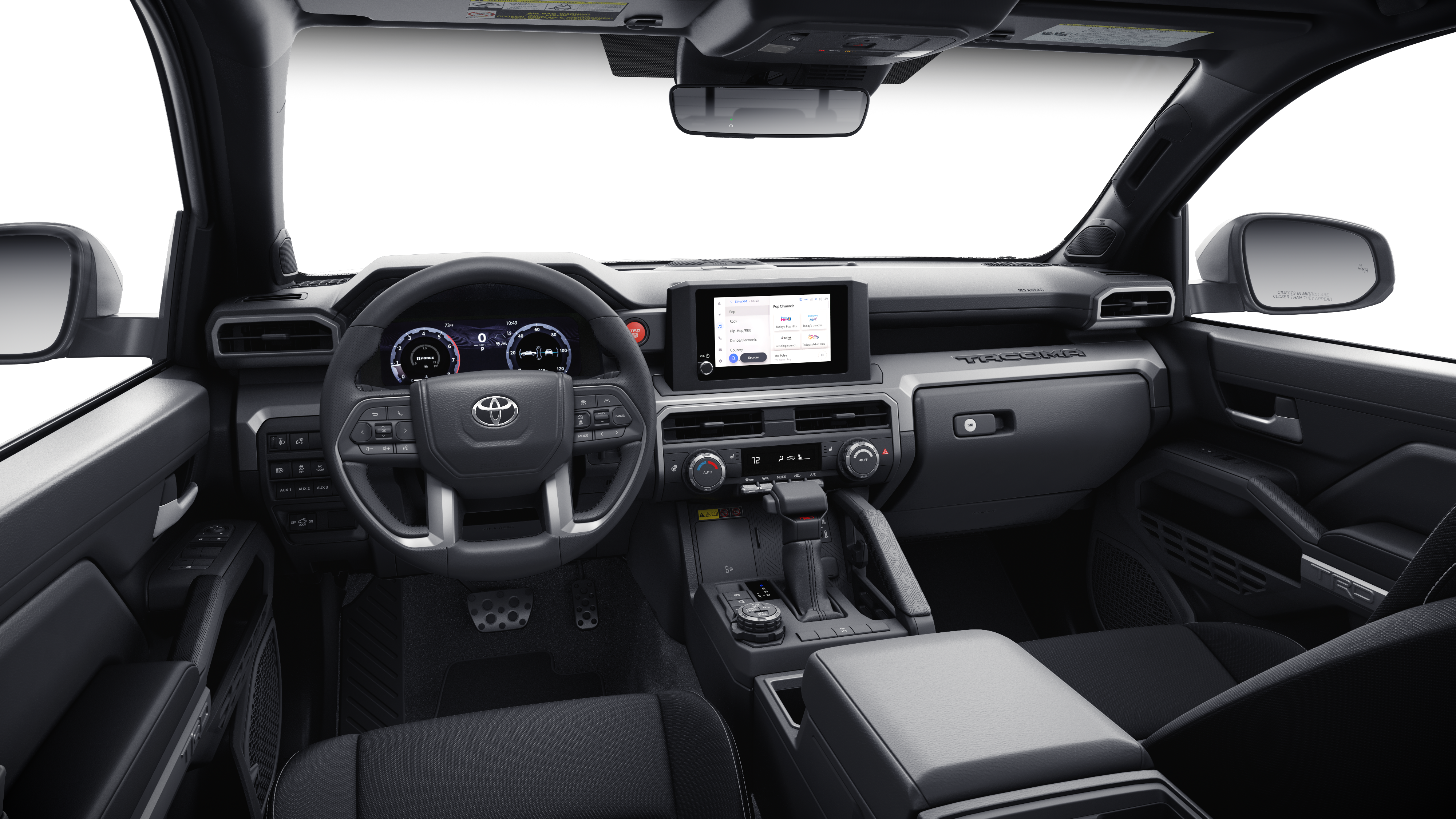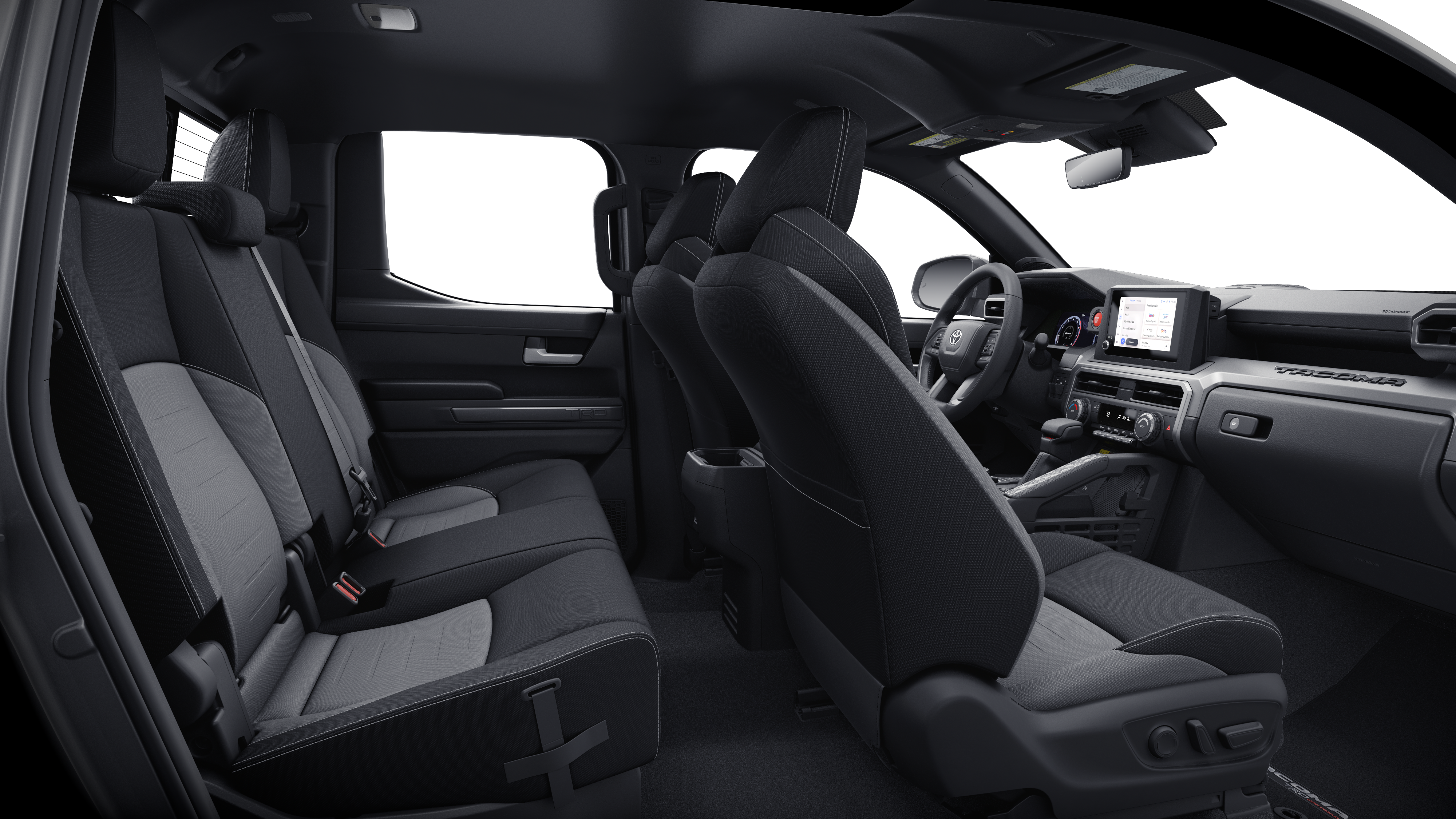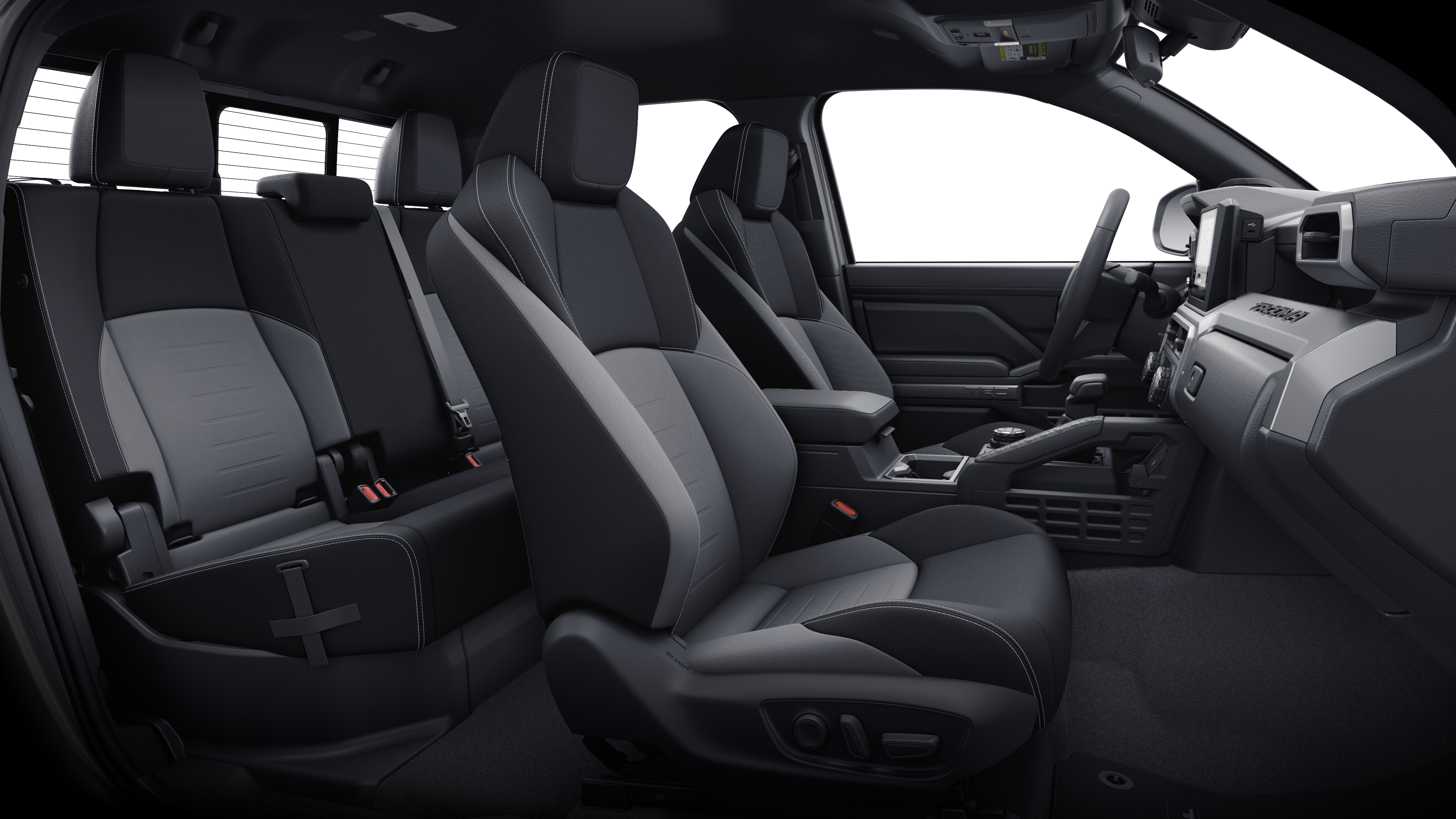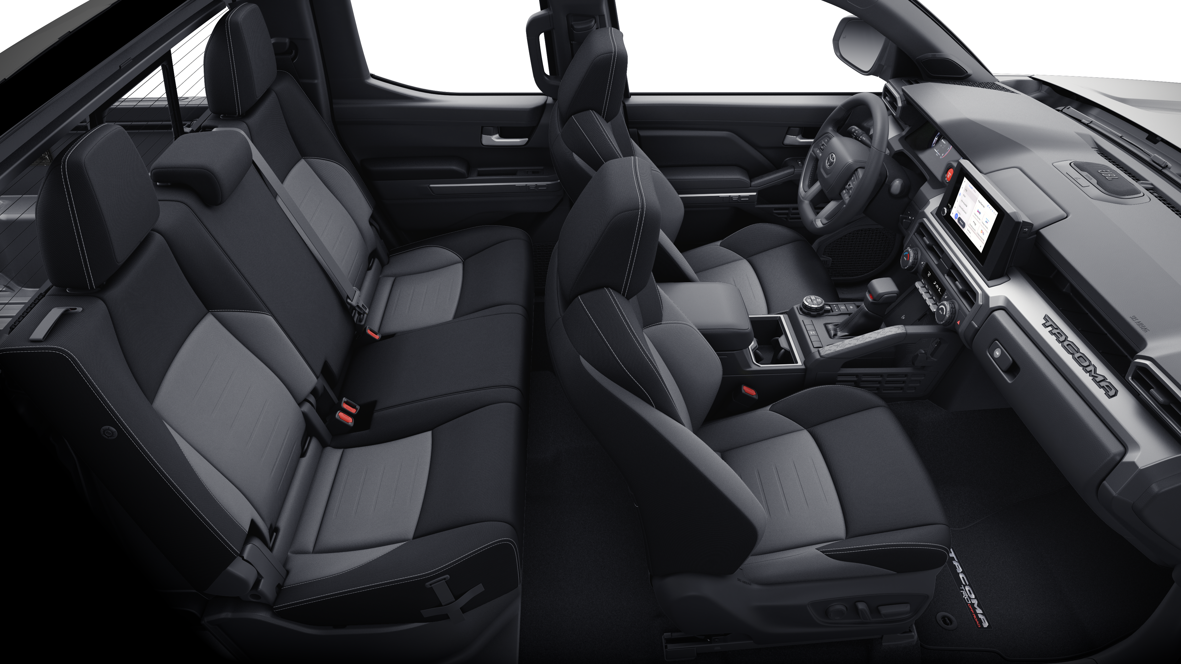 Equipped with TRD Off Road Upgrade Package (8-Way Power Driver & Passenger Seat Adjusters, Heated Front Seats, Heated Leather-Trimmed Steering Wheel, HomeLink Universal Transceiver, Integrated Trailer Brake Controller, JBL Premium Audio, Low Auxiliary (30A) Switches, Power Horizontal Rear Window, Pre-Wire Accommodation (Bed Power Port), and Smart Key w/Digital Key Technology), 4WD, 3.583 Axle Ratio, 4-Wheel Disc Brakes, 6 Speakers, ABS brakes, Air Conditioning, Alloy wheels, AM/FM radio: SiriusXM, Anti-whiplash front head restraints, Apple CarPlay/Android Auto, Auto High-beam Headlights, Auto-dimming Rear-View mirror, Automatic temperature control, Bed Step (TMS), Brake assist, Bumpers: body-color, Driver door bin, Driver vanity mirror, Dual front impact airbags, Dual front side impact airbags, Electronic Stability Control, Emergency communication system: Safety Connect (1-year trial), Exterior Parking Camera Rear, Fabric Seat Trim, Four wheel independent suspension, Front anti-roll bar, Front Bucket Seats, Front Center Armrest, Front fog lights, Front reading lights, Fully automatic headlights, Heated door mirrors, Illuminated entry, Knee airbag, Leather Shift Knob, Leather steering wheel, Low tire pressure warning, Occupant sensing airbag, Outside temperature display, Overhead airbag, Overhead console, Panic alarm, Passenger door bin, Passenger vanity mirror, Power door mirrors, Power steering, Power windows, Radio: 8" Toyota Audio Multimedia, Rear step bumper, Rear window defroster, Remote keyless entry, Security system, SofTex Seat Trim, Speed control, Speed-sensing steering, Split folding rear seat, Spray-On Bed Liner (TMS), Steering wheel mounted audio controls, Tachometer, Telescoping steering wheel, Tilt steering wheel, Traction control, Trip computer, Turn signal indicator mirrors, Variably intermittent wipers, and Wheels: 17" TRD Off-Road Alloy.