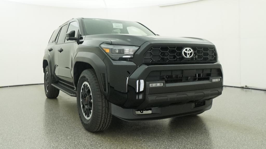 - Black honeycomb-style grille, mirror caps, door handles and overfenders; color-keyed rear spoiler; black "TRD OFF ROAD" and "4RUNNER" badges