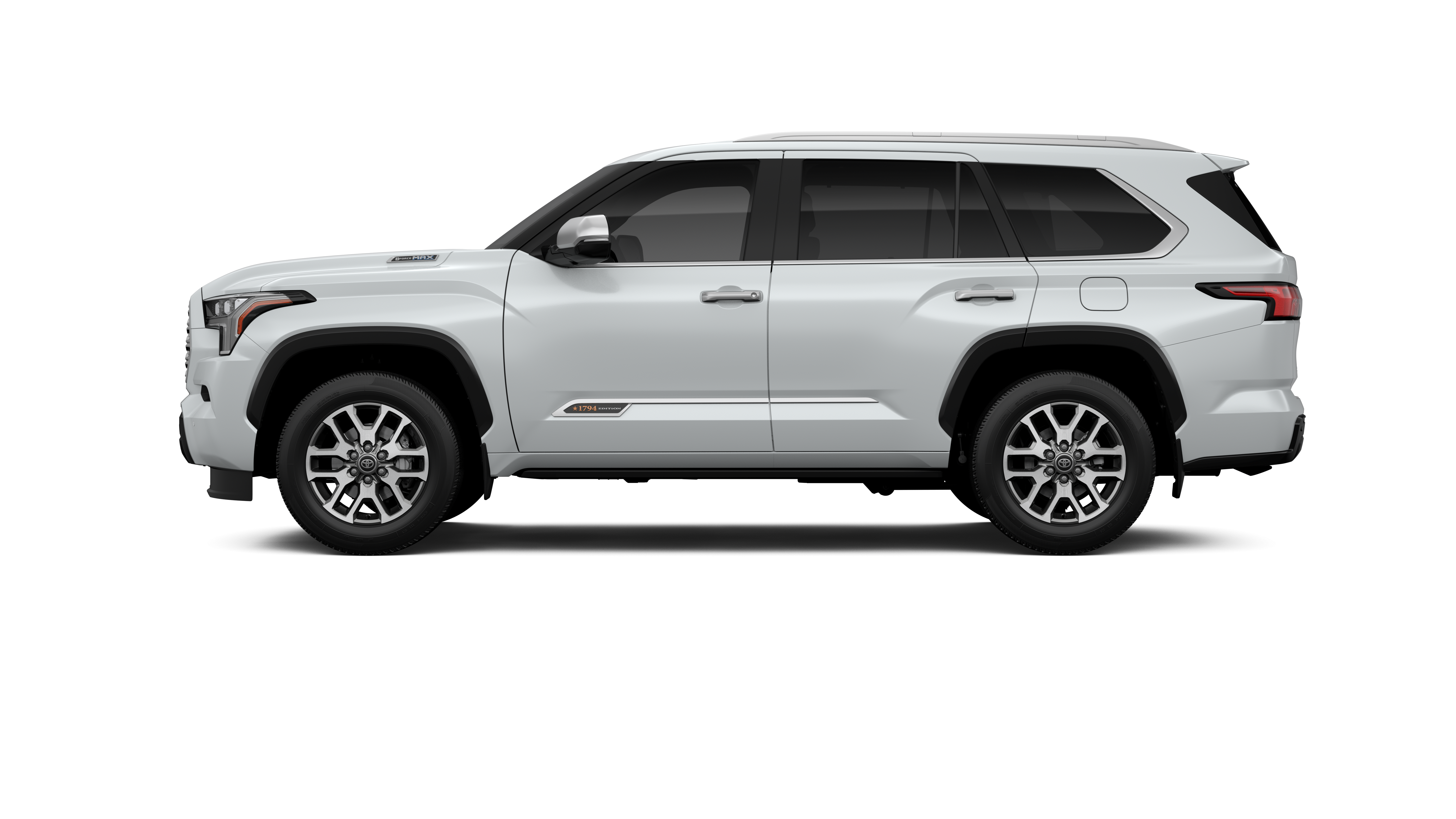 - Bright-chrome "SEQUOIA" rear door badge, chrome "1794 EDITION" door badge and garnish, door handles, window molding and mirror caps; color-keyed tailgate spoiler; black-painted overfenders