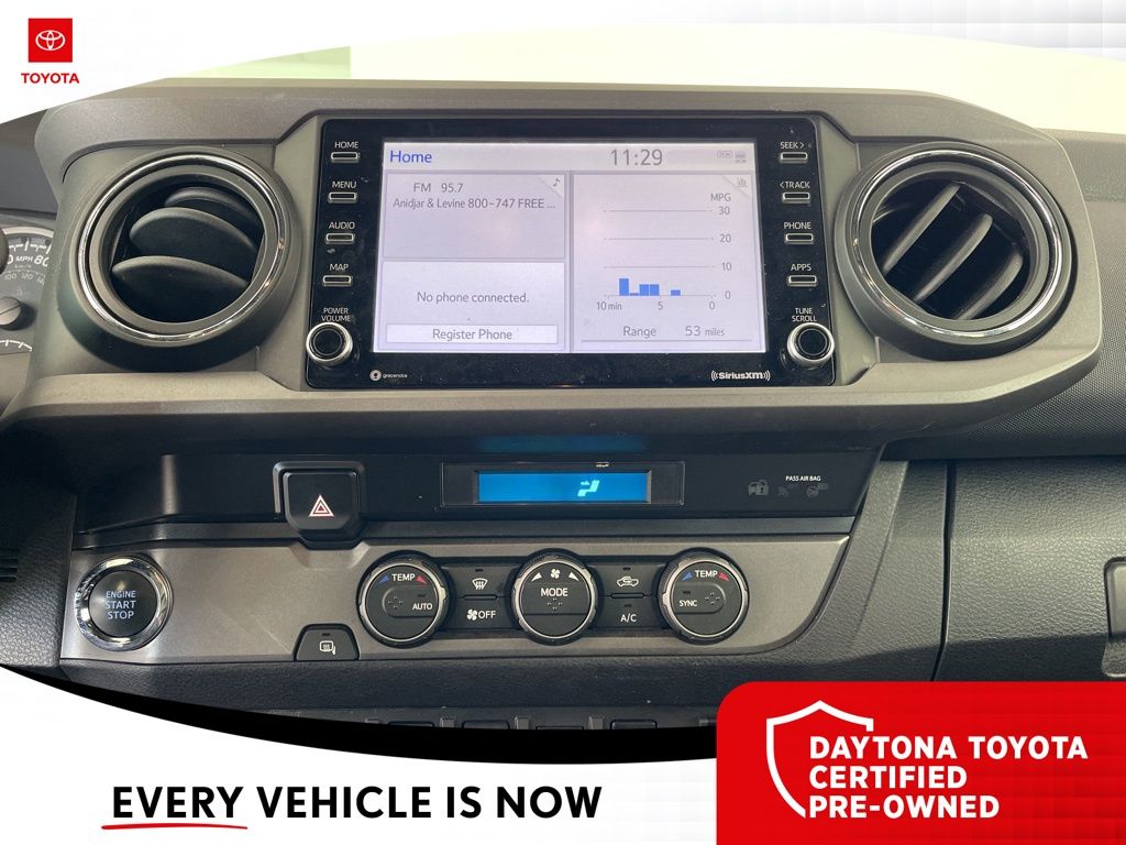 This Tacoma is more than just a rugged workhorse; it's a versatile companion that keeps you connected and comfortable. With features like the 120V/400W Deck-Mounted AC Power Outlet, you can power your gear on the go, while the Smart Key with Push-Button Start ensures effortless access.
