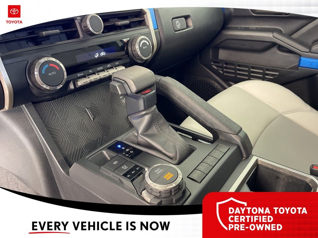 The interior of this Tacoma TRD Sport is equally impressive, with a spacious and well-appointed cabin that offers ample room for you and your passengers. The leather-wrapped steering wheel and shift knob add a touch of sophistication, while the split-folding rear seat provides versatility for all your cargo needs.